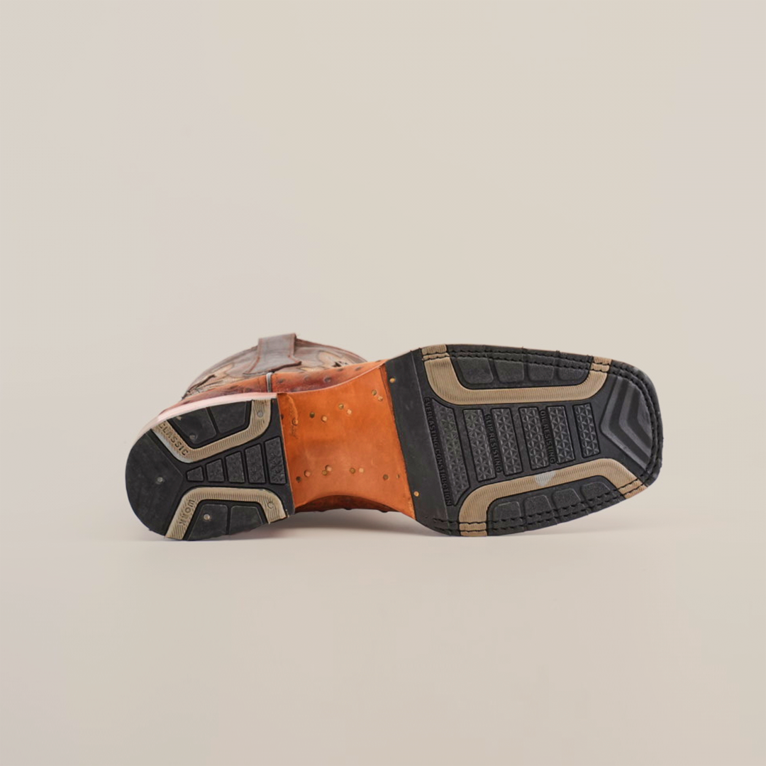 Featuring a Karoo Ostrich Roughout Print in a bold Cognac color, these boots come with a Slip Resistant Sole and Rodeo Toe, offering exceptional traction and style.