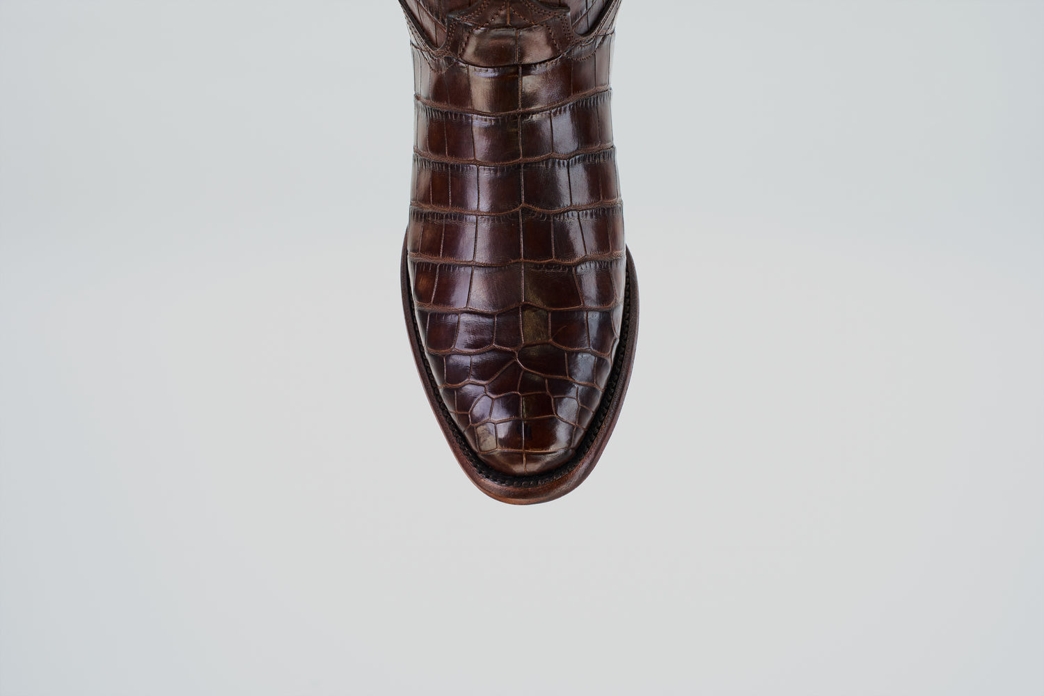 Step into unmatched luxury with our Exotic Full American Alligator boots in rich brown. The classic round toe design meets exceptional craftsmanship in every scale. Paired perfectly with our soft leather briefcase, this combination embodies power and sophistication for the distinguished gentleman who demands excellence.