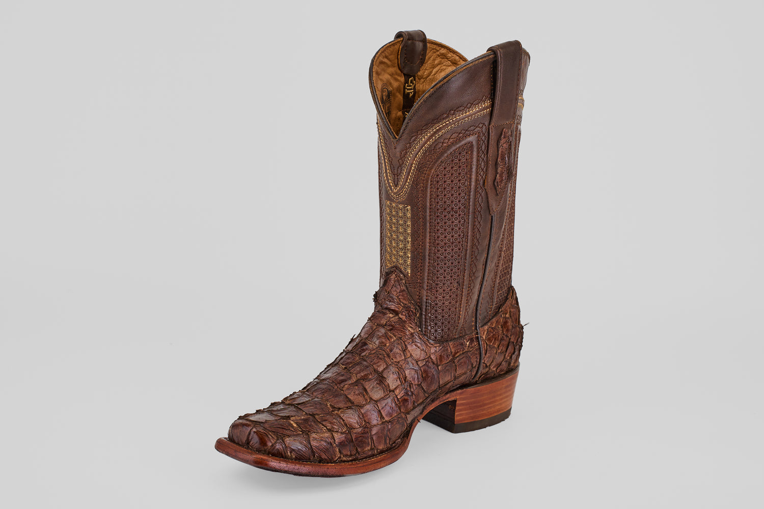Step into style with the Conor Brown Narrow Square Toe Cowboy Boots. Crafted from unique fish leather